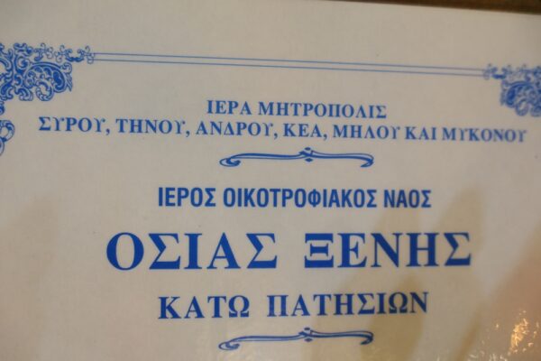 Ο Σεβασμιώτατος Σύρου κ. Δωρόθεος Β’ χοροστάτησε στον Πανηγυρικό Εσπερινό στο τιμώμενο επ` ονόματι της Οσίας Ξένης Μετόχιο της Ιεράς Μητροπόλεως, επί της οδού Αχαρνών, στην περιοχή Κάτω Πατησίων Αθηνών, όπου και η Φοιτητική Εστία της Ιεράς Μητροπόλεως, με την συμμετοχή Κληρικών από την Ιερά Αρχιεπισκοπή Αθηνών και άλλες Μητροπόλεις και την παρουσία της Βουλευτού Κυκλάδων κας Αικ. Μονογυιού, του επί τιμή Προέδρου της Αδελφότητος Τηνίων κ. Παπαδημητρίου, των Μυκονίων Πανεπιστημιακών Ιατρών Φραγκίσκου και Δημητρίου Χανιώτη, του Προέδρου της Ενώσεως Αποστράτων Αξιωματικών Λιμενικού Σώματος κ. Πελοπίδα Αγγελόπουλου και πλήθους πιστών.