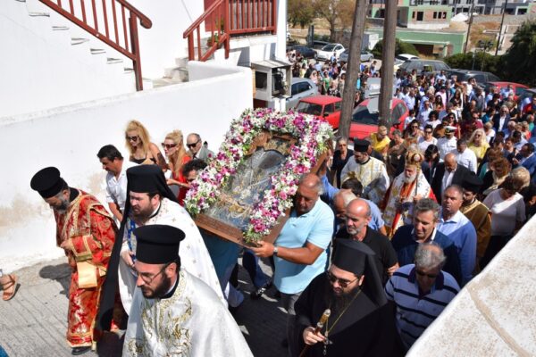 Πλήθος Μυκονίων πιστών και παρεπιδημούντων παραθεριστών κατέκλυσαν και σήμερα την Ιερά Μονή Παναγίας Τουρλιανής, στην Άνω Μερά κατά την τελεσθείσα Θεία Λειτουργία, ιερουργούντος του Σεβασμιωτάτου κ. Δωροθέου Β΄ με τη συμμετοχή των Εφημερίων της νήσου και εκ της Ιεράς Μητροπόλεως Θεσσαλονίκης και με την παρουσία του Υπουργού Εργασίας κ. Ιω. Βρούτση, του Χωρικού Περιφερειάρχη Διαφάνειας κ. Πρίγκου, του Δημάρχου Μυκόνου κ. Κωνστ. Κουκά, εκπροσώπων του Λιμεναρχείου, της Ελληνικής Αεροπορίας και της Ελληνικής Αστυνομίας, του Προέδρου της Τοπικής Κοινότητος Άνω Μεράς, Περιφερειακών και Δημοτικών Συμβούλων και της Προέδρου της Αδελφότητας Ανωμεριτών κας Φραγκίσκας Κουνάνη.