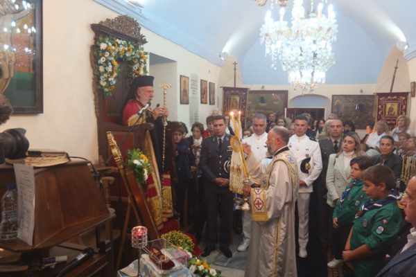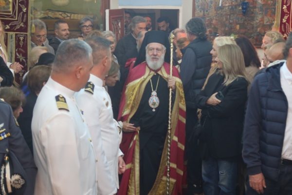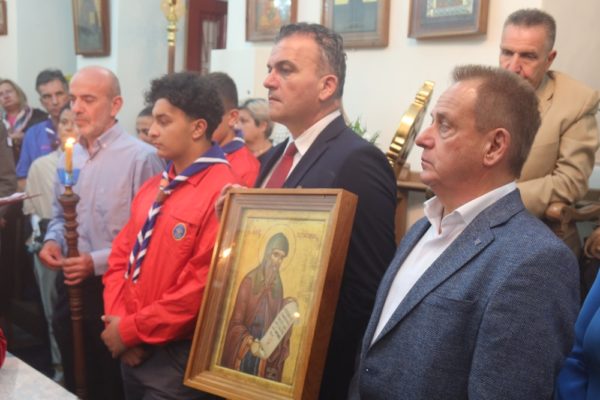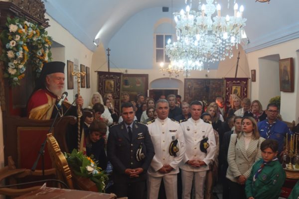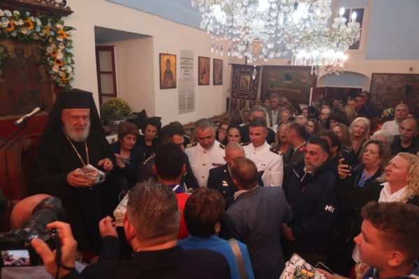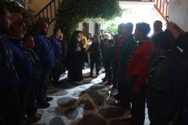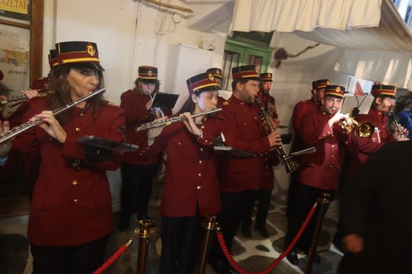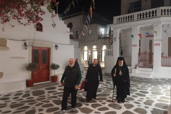 Εκεί ο Σεβασμιώτατος Μητροπολίτης Σύρου κ. Δωρόθεος Β’ τέλεσε τον Εόρτιο Εσπερινό, με τη συμμετοχή του Εφημερίου του Ναού και των Διακόνων, και με την παρουσία του Δημάρχου Λαρισαίων κ. Αθαν. Μαμάκου και του Προέδρου της ΔΕΔΥΑ Λάρισας και Α’ Δημοτικού Συμβούλου, οι οποίοι συνοδεύουν την 40μελή Δημοτική Φιλαρμονική Λάρισας, προσκεκλημένοι του Δημάρχου Μυκόνου και Χρ. Βερώνη, ο οποίος ωσαύτως παρίστατο, Δημοτικών Συμβούλων, της διατελεσάσης Δημάρχου κας Ειρ. Γρυπάρη, του Διοικητή του Αστυνομικού Τμήματος και του Υπολιμενάρχη Μυκόνου, του Κυβερνήτη του σκάφους Λ.Σ.,του Διοικητή της Αεροπορικής Βάσης Μυκόνου, του Διοικητή του Γραφείου Εθνοφυλακής Μυκόνου και της Προέδρου της Αδελφότητος Ανωμεριτών Μυκόνου.