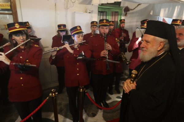 Τέλος, ευχαρίστησε τον Δήμαρχο Λαρισαίων και τη Δημοτική Φιλαρμονική Λάρισας, η οποία απέδωσε κατά την άφιξή του στο Ναό τιμές, και εμνήσθη του Σεβασμιωτάτου Μητροπολίτου Λαρίσης κ. Ιερωνύμου, Μυκονίου εκ μητρός, προς τον οποίο παρεκάλεσε τον Δήμαρχο Λαρισαίων να μεταφέρει την αγάπη και την ευγνωμοσύνη του.