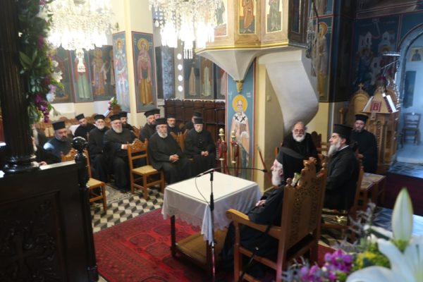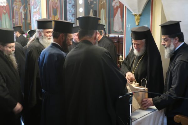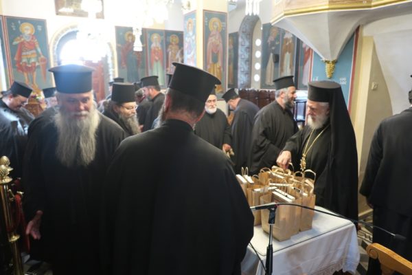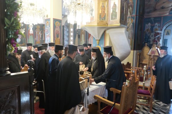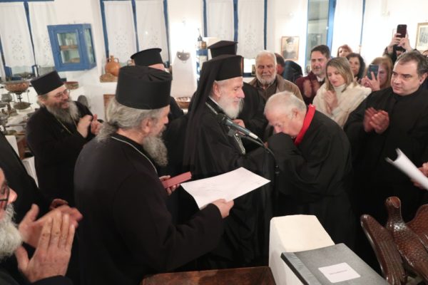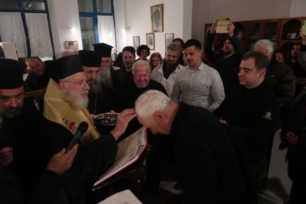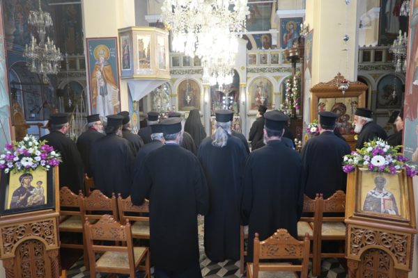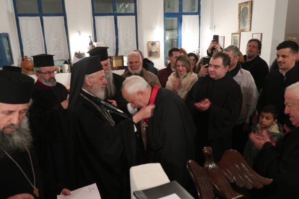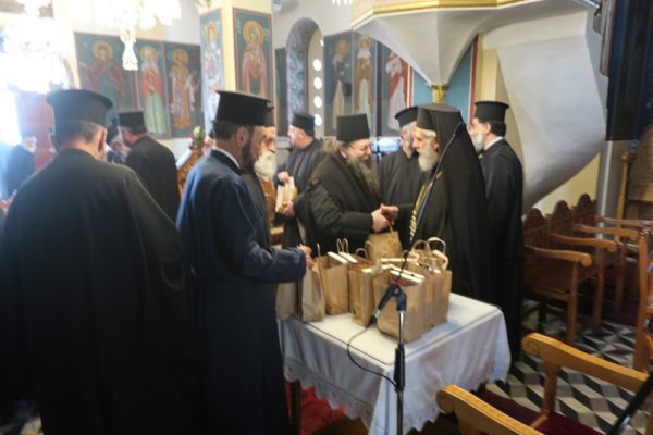 Ο Σεβασμιώτατος συνεχάρη τον Σύλλογο Ιεροψαλτών για τη δράση του και ευχήθηκε να συμμετέχουν και άλλοι νέοι που θα υπηρετήσουν στα αναλόγια των ναών του νησιού. Παράλληλα απένειμε τον Σταυρό της Οσίας Μεθοδίας στον πρόεδρο του Συλλόγου Κωνσταντίνο Λιοπύρο και στον ιεροψάλτη Κωνσταντίνο Στρατή.