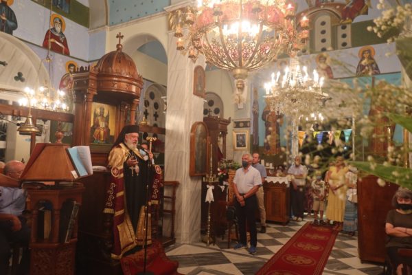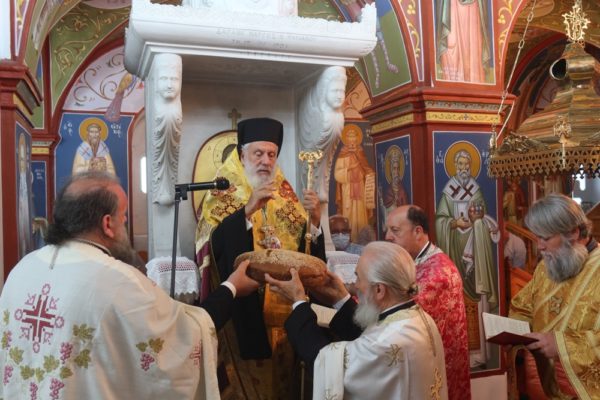 Στο κήρυγμα του, ο Σεβασμιώτατος κ. Δωρόθεος Β’ αναφέρθηκε στην ίδρυση Ναών προς λατρεία του Θεού και τιμή των Αγίων Του, με κέντρο την Αγία Τράπεζα, υπογραμμίζοντας ότι ο Χριστός ανήγαγε το σώμα του ανθρώπου σε Ναό του Θεού και τονίζοντας ότι οι Άγιοι με την προσωπική του ο καθένας προσφορά μας δίνουν πρότυπα ζωής.