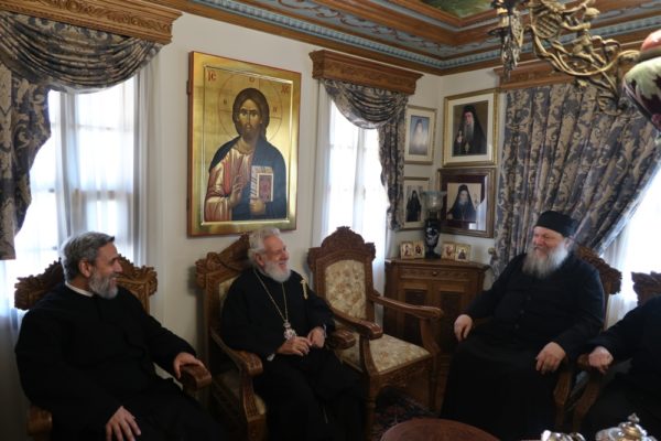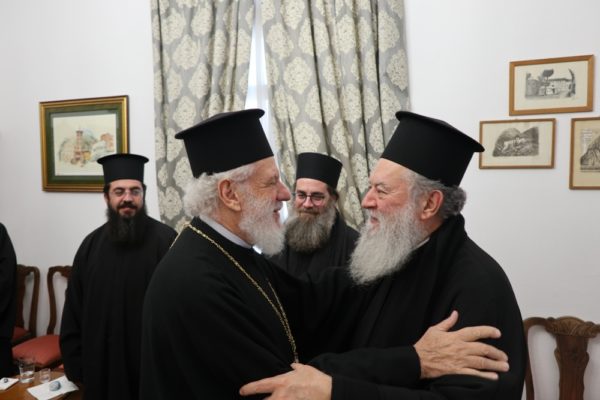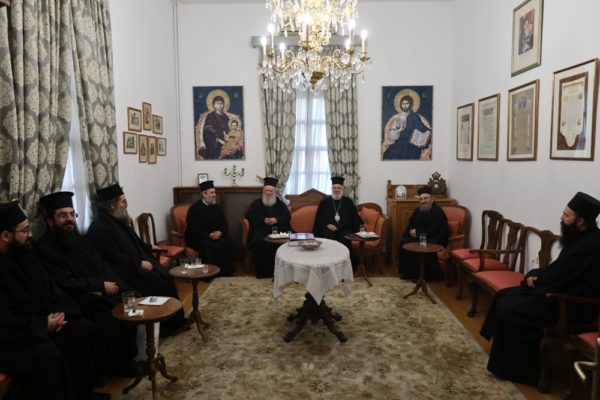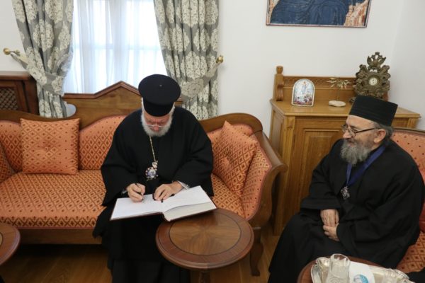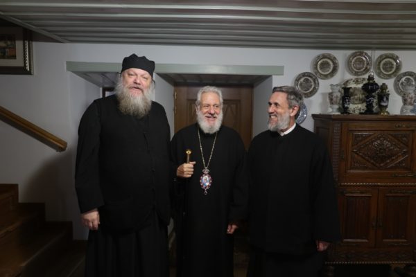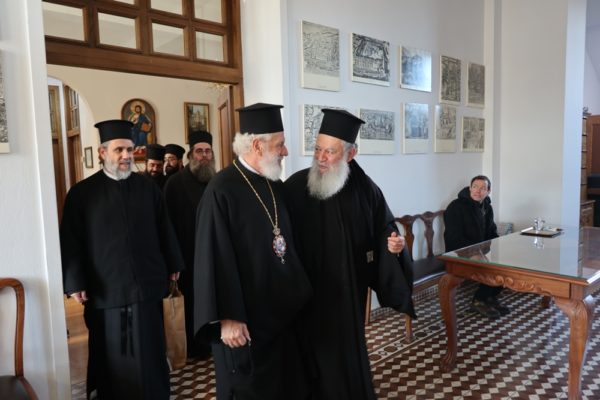 Στη συνέχεια, μετέβη στην έδρα της Ιεράς Επιστασίας, όπου τον υπεδέχθη ο Πρωτεπιστάτης Μοναχός Συμεών Διονυσιάτης, τον οποίο ο Σεβασμιώτατος κ. Δωρόθεος Β’ ευχαρίστησε για την παρασχεθείσα άδεια μεταβάσεώς του στο Αγιωνυμο Όρος.