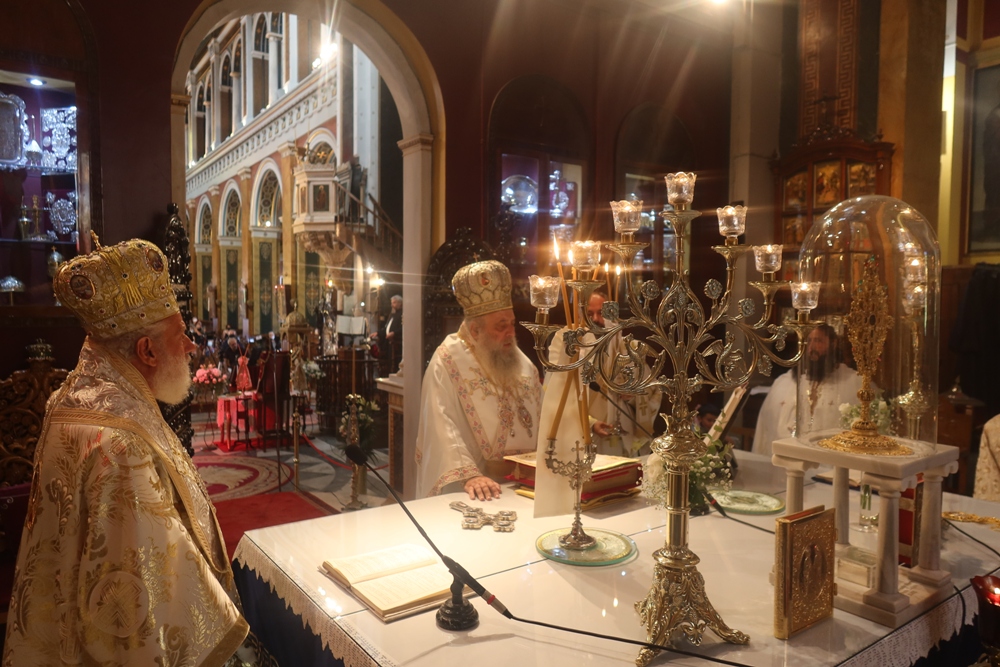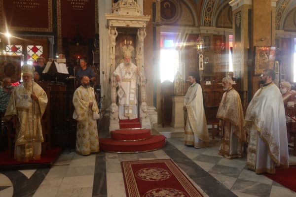 Προεξάρχοντος του Σεβασμιωτάτου Μητροπολίτου Παροναξίας κ. Καλλινίκου και συνιερουργούντος του Σεβασμιωτάτου κ. Δωροθέου Β’, χωρίς την προγραμματισμένη συμμετοχή του Σεβασμιωτάτου Μητροπολίτου Θηβών κ. Γεωργίου, ο οποίος παρέμεινε κοντά στο δοκιμαζόμενο από τις καταστροφικές πυρκαϊές ποίμνιό του, και του Θεοφιλεστάτου Επισκόπου Ρωγών κ. Φιλοθέου, ο οποίος αναχώρησε από τη Σύρο λόγω έκτακτων λειτουργικών του υποχρεώσεων, τελέσθηκε σήμερα στον Ιερό Καθεδρικό Ναό του Αγίου Νικολάου Ερμουπόλεως Δισαρχιερατική Θεία Λειτουργία και ιερό Μνημόσυνο του αοιδίμου Ερμουπολίτου Μητροπολίτου Πολυανής και Κιλκισίου Εμμανουήλ, ο οποίος εμαθήτευσε τα ιερά Γράμματα στο ιερό Βήμα του Ναού, παρά τους αειμνήστους Αρχιμανδρίτες Γρηγόριο Μαραγκό και Τιμόθεο Δραγάση.