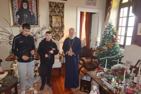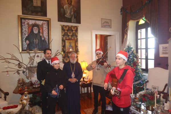 Παιδιά κάθε ηλικίας από το πρωί σήμερα έψαλαν τα Πρωτοχρονιάτικα Κάλαντα και ευχήθηκαν στον Σεβασμιώτατο κ. Δωρόθεο Β΄, ο οποίος ανταπέδιδε τις ευχές του με πολλή αγάπη στο Επισκοπείο Ερμουπόλεως, στο οποίο προσήλθε για να υποβάλει τις ευχές του, και εκ μέρους όλων των συναδέλφων του, ο Πλοηγός κ. Λεονάρδος Παλαιολόγος.