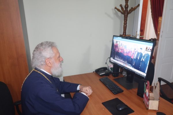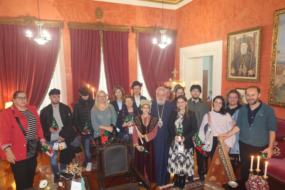 Το μεσημέρι, στα Γραφεία της Ιεράς Μητροπόλεως, ο Σεβασμιώτατος κ. Δωρόθεος Β’ άκουσε τις ευχές και τα Κάλαντα της Πρωτοχρονιάς από τα Μέλη του Λυκείου Ελληνίδων, και, μέσω skype απ’ ευθείας, η Φιλαρμονική του Πανελληνίου Ιερού Ιδρύματος Ευαγγελιστρίας Τήνου.