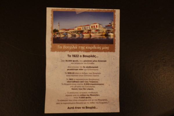 Στο πλαίσιο των εκδηλώσεων για την επέτειο της 86ης Επετείου από τη θαυμαστή εύρεση της Εικόνας του Αγίου Δημητρίου και την έλευση στη Σύρο της Ιεράς Εικόνας της Παναγίας «Βουρλιωτίσσης» καθώς και στο πλαίσιο συμπλήρωσης 100 ετών μνήμης από τη Μικρασιατική Καταστροφή, ο Σύλλογος Μικρασιατών Ερμούπολης Σύρου διοργάνωσε στο θέατρο «Απόλλων» εκδήλωση αφιερωμένη στα Βουρλά και το βραβευμένο με Νόμπελ Λογοτεχνίας ποιητή Γεώργιο Σεφέρη, με κεντρικό ομιλητή τον κ.Φώτη Καραλή, Πρόεδρο της Ένωσης Βουρλιωτών Μ. Ασίας.