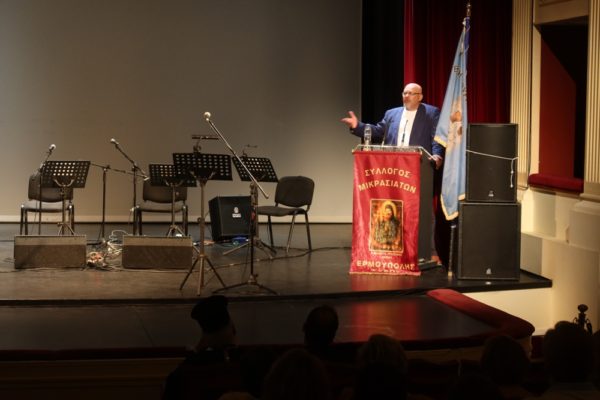 Την εκδήλωση προλόγισε, συγκινησιακά φορτισμένη, η Πρόεδρος του Συλλόγου Μικρασιατών Ερμούπολης Σύρου κα Ειρ. Χαρδαλή.