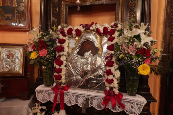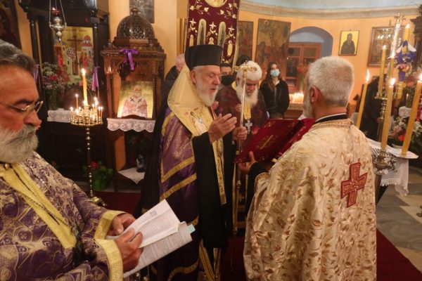 Άμα τη αφίξει του, προερχόμενος από την Ερμούπολη, χθες το απόγευμα τέλεσε την Ακολουθία της Β’ Στάσεως των Χαιρετισμών προς την Υπεραγία Θεοτόκο στον Μητροπολιτικό Ναό του Τιμίου Σταυρού- Παναγίας Παντανάσσης, η περίπυστη εικόνα της Οποίας, φυλασσομένη στον Ιερό Ναό, εορτάζει κατ’ έτος και τιμάται από τους απανταχού Σικινίους την Κυριακή της Ορθοδοξίας.