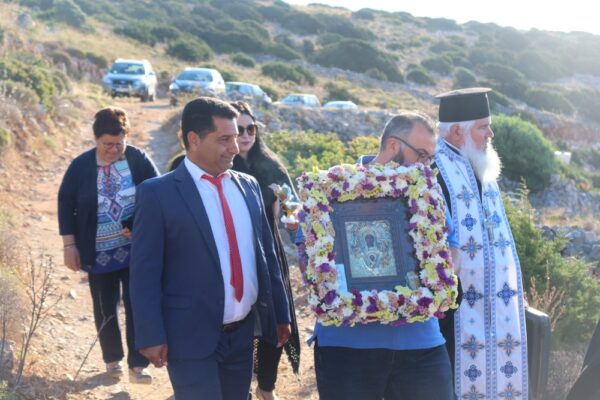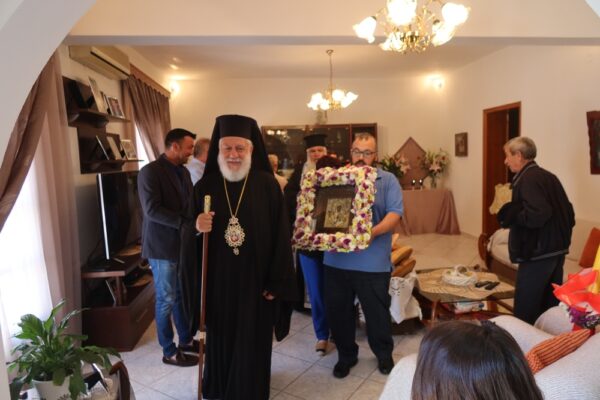 Ο Σεβασμιώτατος κ. Δωρόθεος Β’ νωρίς το πρωί μετέβη στην οικία του Πανηγυρά, απ’ όπου, με αυτοκινητοπομπή, η Αγία Εικόνα μετεφέρθη στην Ιερά Μονή Χρυσοπηγής.