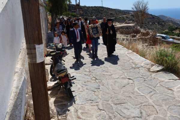 Τέλος, αναφέρθηκε στις ευεργεσίες της Θεοτόκου, τις οποίες ως ακένωτος πηγή διαχέει προς την ανθρωπότητα, ευχαρίστησε τους δυο Εφημερίους της Σικίνου, Πρωτοπρεσβυτέρους Σπυρίδωνα και Θεόδωρο, για τη διακονία τους, και την Υπεύθυνη της Ιεράς Μονής, Μοναχή Δωροθέα για την άοκνη μέριμνά της, και τους πιστούς για την παρουσία τους, προς τους οποίους διένειμε μαζί με το αντίδωρο εικόνες της Αναστάσεως, ως ευλογία, και παιχνίδια στα παιδιά.