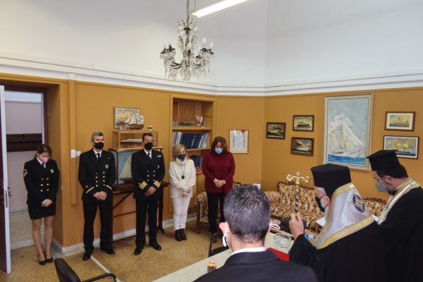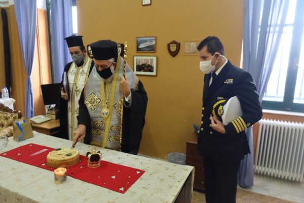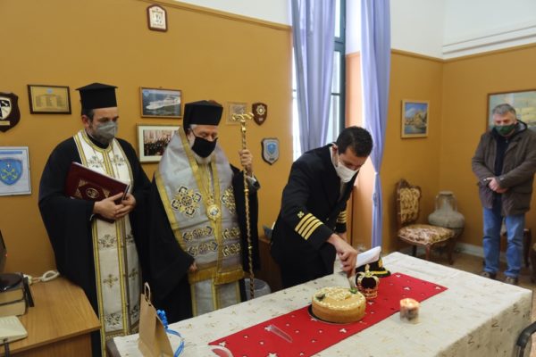 Κατόπιν προσκλήσεως του Διοικητού της Ακαδημίας Εμπορικού Ναυτικού Σύρου, Πλοιάρχου κ.Παναγιώτη Καραμίτσα, και με την παρουσία του Λιμενάρχη Σύρου κ. Ιω. Βαμβακούση, του Διευθυντού Σπουδών, των Καθηγητών και των Υπαλλήλων της Σχολής, ο Σεβασμιώτατος Μητροπολίτης Σύρου, Τήνου, Μυκόνου, Άνδρου, Κέας και Μήλου κ. Δωρόθεος Β΄, συνοδευόμενος από τον Εφημέριο του Ιερού Ναού Αγίου Νικολάου Ερμουπόλεως, Αρχιμ. Βενἐδικτο Φραγκογιάννη ευλόγησε βασιλειόπιτες, διαδοχικά, στο Γραφείο του Διοικητού και στις τρεις Τάξεις των Μαθητών, προς αποφυγή συνωστισμού. Στη μεγάλη Αίθουσα Εκδηλώσεων της Σχολής ευχαρίστησε και συνεχάρη το Διοικητή και τους Εκπαιδευτικούς για το έργο τους, συνεχάρη τους σπουδαστές και τους ευχήθηκε καλή πρόοδο, ώστε να φανούν αντάξιοι των μεγάλων ναυμάχων και ναυάρχων της πατρίδος μας, να τιμήσουν την Ελληνική Σημαία, την Ελληνική Ναυτοσύνη και τις παραδόσεις του τόπου μας, όπου και αν ταξιδέψουν. Απευθυνόμενος δε ιδιαιτέρως στους πρωτοετείς ανέφερε χαρακτηριστικά: «Σας καλωσορίζω στο νησί μας και σας συγχαίρω για την επιλογή σας να σπουδάσετε στην Ακαδημία μας. Μπολιάζεσθε σε μία κοινωνία που διαπνέεται από τον πολιτισμό της και διακρίνεται για την ιστορία της. Η παρουσία σας εδώ αποτελεί για όλους μας αιτία χαράς».