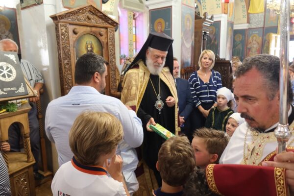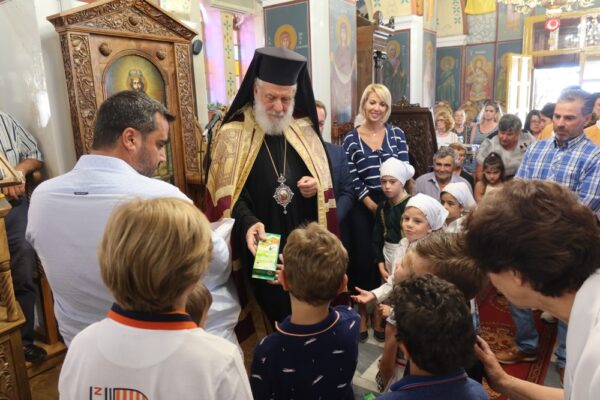 Ο Σεβασμιώτατος προ της απολύσεως του Εσπερινού διένειμε στους πιστούς ευλογίες για την προλαβούσα εορτή του Αγίου Δωροθέου και σε όλα τα παιδιά δώρα.