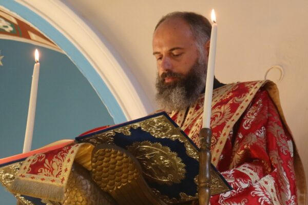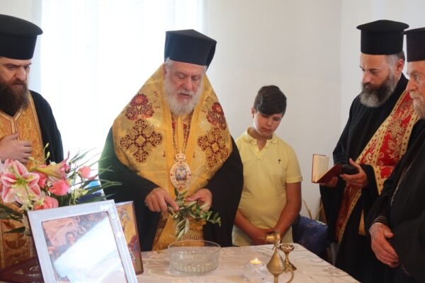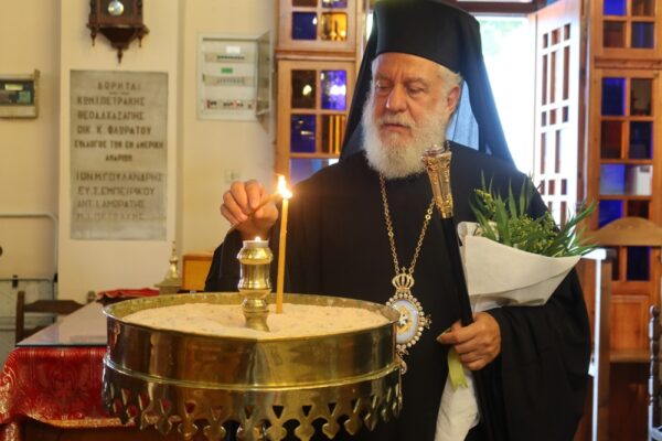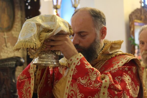 Ευχαρίστησε δε και συνεχάρη τον Εφημέριο του Ναού, Πρεσβύτερο Ελευθέριο Φραδέλλο και τους συνεργάτες του για την μέριμνά τους προς το Ναό και την πρόσφατη ανακαίνισή του.