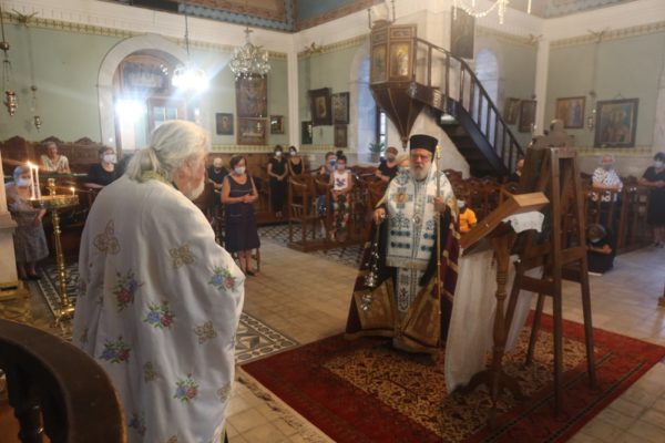 Ομιλών προς το εκκλησίασμα, ο Σεβσσμιώτατος κ. Δωρόθεος Β’, αναφέρθηκε στις πληροφορίες για τον θάνατο, την ταφή και τη μετάσταση της Θεοτόκου, που αναφέρονται στις απόκρυφες διηγήσεις, τις οποίες μετέφερε ο Πατριάρχης Ιεροσολύμων Ιουβενάλιος προς την Αυτοκράτειρα Πουλχερία, κατά τη διάρκεια της Δ’ Οικουμενικής Συνόδου, όταν η ευσεβής Αυτοκράτειρα ζητούσε να μεταφερθεί Λείψανο της Θεοτόκου στη Βασιλεύουσα για προστασία.