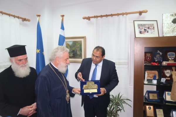 Στη συνέχεια, ο Σεβασμιώτατος κ. Δωρόθεος Β’ επεσκέφθη το Δημαρχιακό Κατάστημα Αμοργού, όπου ευχαρίστησε το Δήμαρχο για την υποδοχή και τη φιλοξενία του.