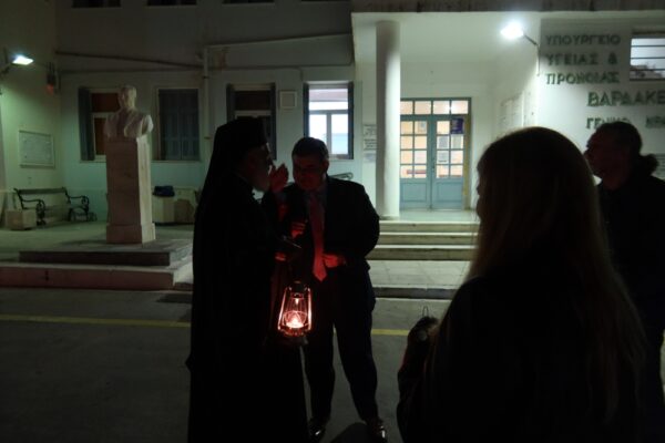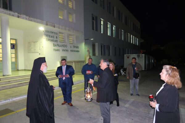 Το φυλασσόμενο και αενάως τροφοδοτούμενο στον Ιερό Ναό της Αναστάσεως του Σωτήρος στην Ερμούπολη Άγιο Φως μετέφερε το Μεγάλο Σάββατο ο Σεβασμιώτατος κ. Δωρόθεος Β’ στο Βαρδάκειο και Πρώιο Γενικό Νοσοκομείο Σύρου, ο οποίος το παρέδωσε στον Διοικητή του κ. Μιχ. Ζουλουφό, με την παρουσία του Διευθυντή κ. Τρίτζαλη, της Προέδρου των εργαζομένων κας Αικ. Καλογεράκη και του Τομεάρχη Νοσηλευτικών Υπηρεσιών κ. Αποστόλου Ευκαρπίδη.