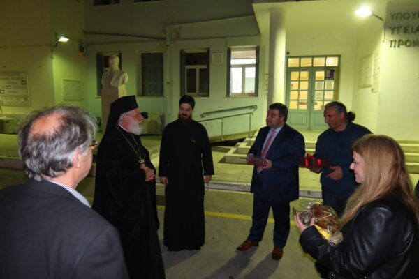 Παραδίδων το Άγιο Φως, ο Σεβασμιώτατος κ. Δωρόθεος Β’ ευχήθηκε να αποτελέσει ελπίδα και στήριγμα για το ιατρικό και νοσηλευτικό προσωπικό του Νοσοκομείου και ιατήριο για τους νοσηλευόμενους σ’ αυτό, και προσέφερε σε όλους κόκκινα αυγά.