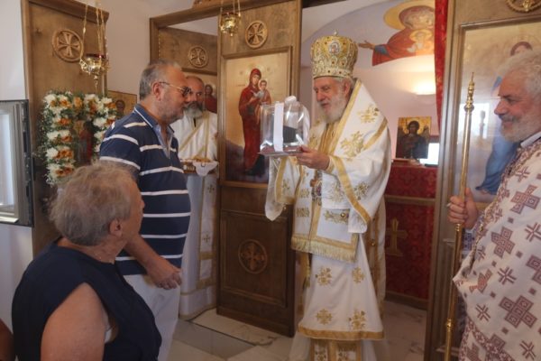 Στο κήρυγμά του, ο Σεβασμιώτατος κ. Δωρόθεος Β’, αφού συνεχάρη την κτήτορα του Ναού, η οποία τυγχάνει να είναι και εξ ανδρός συγγενής του, και την οικογένειά της για την ανέγερση ενός ακόμη Θυσιαστηρίου, ανεφέρθη στην παραβολική σημασία της σημερινής Ευαγγελικής περικοπής του πολλαπλασιασμού των πέντε άρτων και των δύο ιχθύων, επισημαίνοντας ότι το θαυμαστό αυτό γεγονός υποδηλώνει και συμβολίζει τον ίδιο τον Χριστό, τον μελιζόμενο και μη διαιρούμενο, τον πάντοτε εσθιόμενο και μηδέποτε δαπανώμενο!