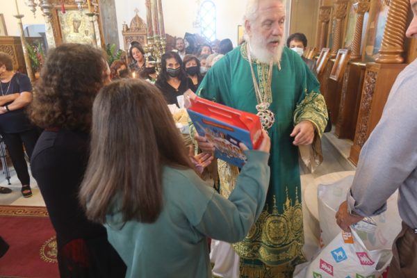 Τέλος, διένειμε στα παρόντα παιδιά δώρα και ευχήθηκε σε όλους, αφού τους ευχαρίστησε για την συμμετοχή τους, για τον προσιόντα χειμώνα.