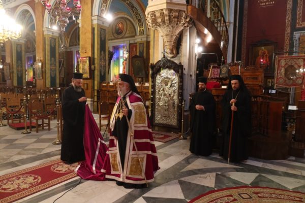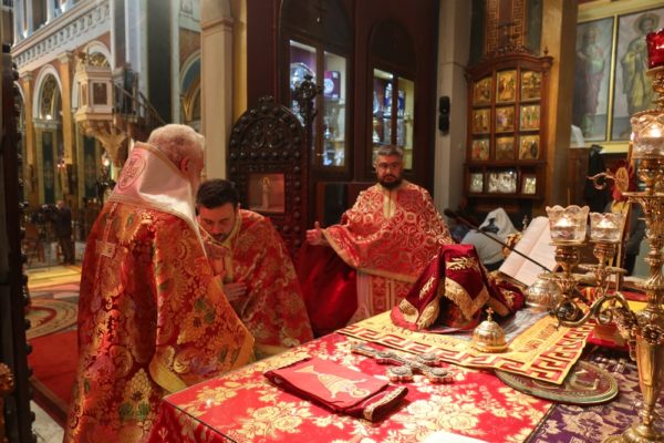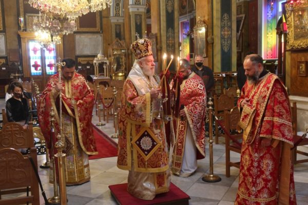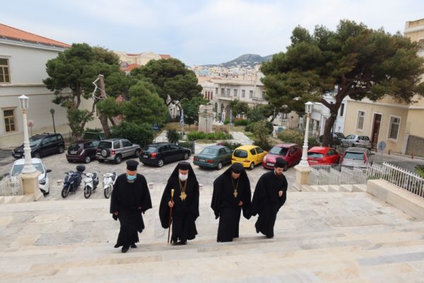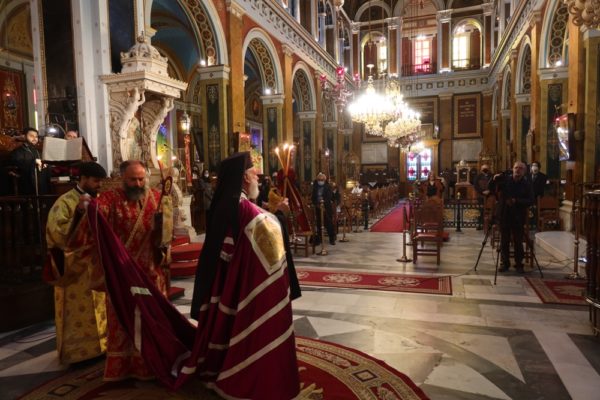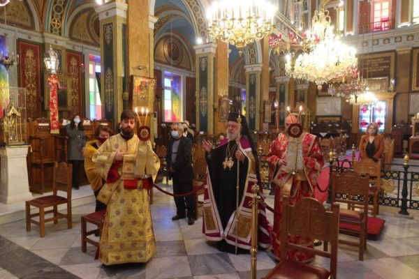 Με την τήρηση των ισχυόντων μέτρων υγειονομικής προστασίας, ο Σεβασμιώτατος Μητροπολίτης Σύρου κ. Δωρόθεος Β’ ιερούργησε σήμερα το πρωί στον Ιερό Καθεδρικό Ναό του Αγίου Νικολάου Ερμουπόλεως, με τη συμμετοχή των Διακόνων του και των Εφημερίων του Ναού, Αρχιμ. Βενεδίκτου Φραγκογιάννη και Οικονόμου Λουκά Βασάλου, ενώ το αναλόγιο διηκόνησαν ο Αρχιμ. Νικόλαος Γαβαλάς και οι Δομέστικοι Ευάγγελος Χάλαρης και Κων. Κουτσός.