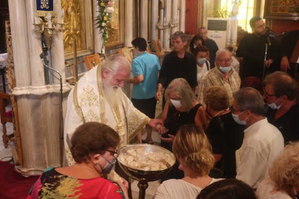 Πρό του πέρατος της Θείας Λειτουργίας, ο Σεβασμιώτατος κ. Δωρόθεος Β’ ευλόγησε το νέο καρπό της αμπέλου, αναφερθείς στην καταξίωση των υλικών αγαθών επ` ωφελεία του ανθρώπου και στον αγιασμό τους, διά της παρουσίας του Κυρίου, ο Οποίος ήρθε για να μεταμορφώσει και νά “ποιήσει καινά” τα πάντα, όχι μόνο τον άνθρωπο, αλλά και τη φύση, η οποία, δυστυχώς στις μέρες μας καταστρεφεται από πυρκαϊές, τις οποίες ευχήθηκε τάχιστα να καταπαύσει ο Κύριος, να στηρίξει τους πληγέντες και να ενισχύσει και προστατεύσει όσους, με κίνδυνο της ζωής τους, μάχονται για την κατάσβεσή τους.