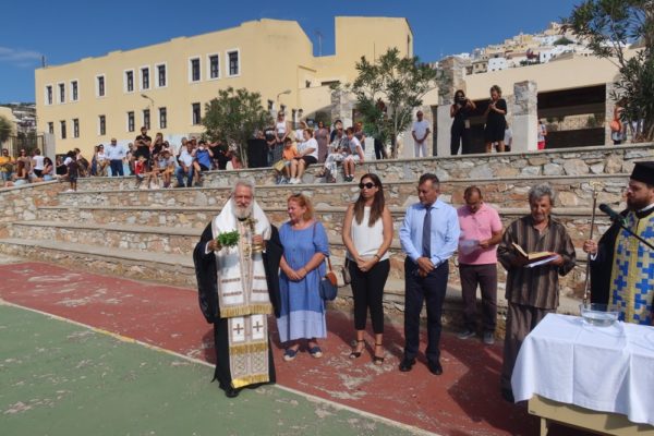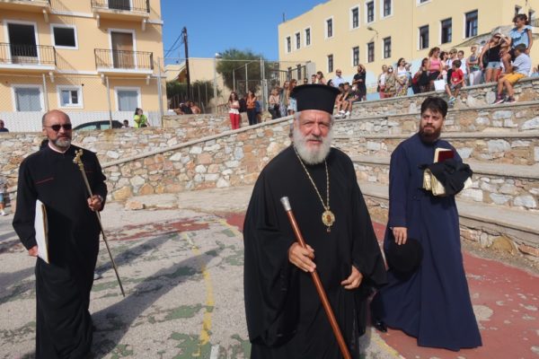 Στη συνέχεια, συνοδευόμενος από τον Αρχιερατικό Επίτροπο Σύρου και τον Εφημέριο της εκασταχού Ενορίας, τέλεσε τον Αγιασμό για την έναρξη ου νέου Σχολικού έτους, διαδοχικά, στο συγκρότημα, όπου συστεγάζονται το 1ο, 2ο και 3ο Γυμνάσιο Σύρου, στην περιοχή του “Ξηροκάμπου”, και στο συγκρότημα των Λυκείων Σύρου, στην περιοχή του Άνω Μάννα, με την παρουσία των Βουλευτών Κυκλάδων κας Αικατ. Μονογυιού, Ιω. Βρούτση και Φιλ.Φόρτωμα, του Χωρικού Αντιπεριφερειάρχη Κυκλάδων κ. Γεωργίου Λεονταρίτη, του Δημάρχου Σύρου-Ερμούπολης κ. Νικ. Λειβαδάρα, της εντεταλμένης για θέματα Παιδείας του Δήμου Σύρου-Ερμούπολης Δημοτικής Συμβούλου κας Ειρήνης Δράκου, της Αντιδημάρχου Καθαριότητας κας Αγγελικής Πρίντεζη, του Προέδρου της Τοπ. Κοιν. Άνω Σύρου κ. Πέτρου Ραουζαίου, του επικεφαλής της Μείζονος Αντιπολίτευσης του Δήμου κ. Αλεξ. Αθανασίου, του Διευθυντού Δευτεροβάθμιας Εκπαίδευσης κ. Ξενοφώντα Βαμβακερού και του Προέδρου της Τ.Ο. Σύρου της ΝΔ κ. Στάθη Μπαμπούνη.