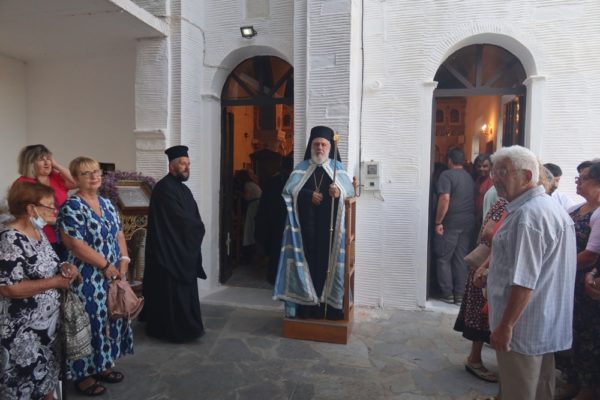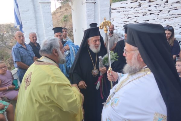 Ο Σεβασμιώτατος Μητροπολίτης Σύρου κ. Δωρόθεος Β’, ο οποίος από χθες το πρωί πραγματοποιεί ποιμαντική περιοδεία στην Άνδρο, τέλεσε τον Εσπερινό στον Ιερό Ναό Αγίας Μαρίνης, του ομώνυμου χωρίου, στην περιοχή του Κορθίου, με τη συμμετοχή του εκτελούντος χρέη Εφημερίου του Ναού, Πρεσβ. Ιακώβου Στεφάνου και Εφημερίων των πέριξ Ενοριών, και με την παρουσία του Αντιδημάρχου Κορθίου, του Προέδρου της Τοπικής Κοινότητος Μπατσίου, της Δημοτικής Συμβούλου και Υπευθύνου Πολιτικής Προστασίας και πλήθους πιστών Ανδρίων και παρεπιδημούντων προσκυνητών.