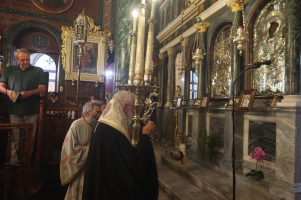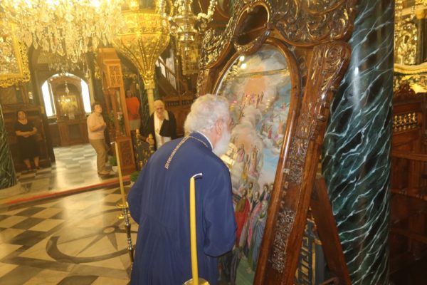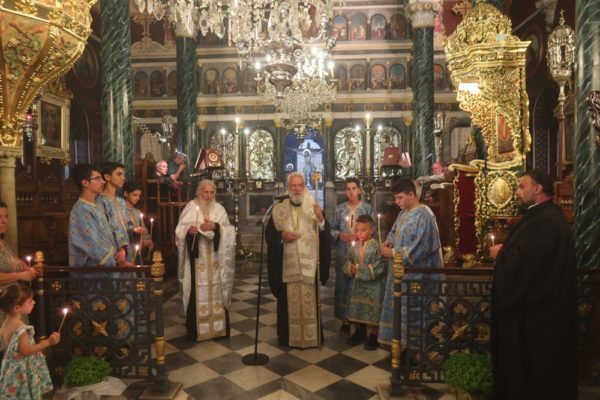 Τέλος, συνεχάρη τον Εφημέριο του Ναού, Πρωτοπρ. Κωνσταντίνο Κοντό για το έργο του και τη μέριμνά του για το Ναό, καθώς και τους συνεργάτες του, Επιτρόπους, Ιεροψάλτες και διακονητές και ευχήθηκε σε όλους για τον αρξάμενο Παναγιωνυμο μήνα Αύγουστο.