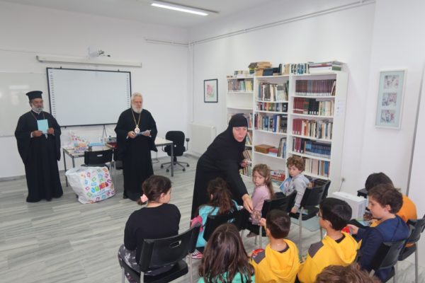 Ομιλώντας προς τους μαθητές, ο Σεβασμιώτατος, αφού τους αφηγήθηκε παραστατικές διδακτικές ιστορίες και τους απηύθυνε πατρικές νουθεσίες και συμβουλές, τους χαρακτήρισε “μικρούς ήρωες”, οι οποίοι, καθώς κατοικούν στο πιο ολιγάνθρωπο νησί της Μητροπόλεως και φοιτούν στο μικρότερο Σχολείο, από όσα έχει επισκεφθεί, παραμένουν φύλακες και φρουροί της ιστορίας, του πολιτισμού και των παραδόσεων,στις οποίες τους κάλεσε να παραμείνουν πιστοί και αφοσιωμένοι, τους διένειμε βιβλία και εκπαιδευτικό υλικό και τους ευχήθηκε για την καλή τους πρόοδο.
