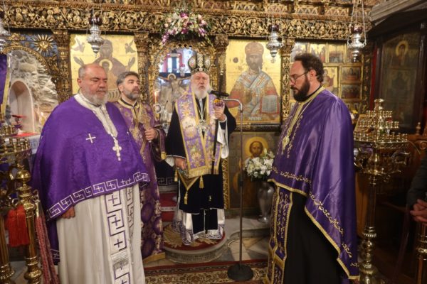 Λόγω του απαγορευτικού του απόπλου των πλοίων προς Άνδρο, ο Σεβασμιώτατος επιστρέφει σήμερα στην Ερμούπολη και το εσπέρας θα χοροστατήσει κατά την Ακολουθία της Δ’ Στάσεως των Χαιρετισμών προς την Υπεραγία Θεοτόκο στον Ιερό Καθεδρικό Ναό του Αγίου Νικολάου Ερμουπόλεως.