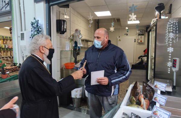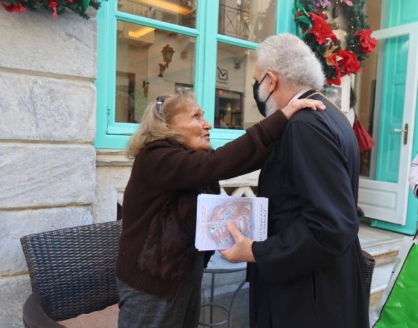 Ο Σεβασμιώτατος Μητροπολίτης Σύρου κ. Δωρόθεος Β΄, τηρώντας προσεκτικά τα υγειονομικά πρωτόκολλα, περιήλθε σήμερα τα Καταστήματα της αγοράς της Ερμουπόλεως, τα εστιατόρια, τις καφετέριες, τα ταξιδιωτικά γραφεία, το σταθμό των Ταξί, την Πλατεία και τους γύρο δρόμους, ευχήθηκε στους επιχειρηματίες, καταστηματάρχες, εργαζομένους και πολίτες για το νέο έτος και διένειμε δώρα και ευλογίες, γενόμενος από όλους δεκτός με πηγαίες εκδηλώσεις σεβασμού και αγάπης, στο πλαίσιο της εορταστικής περιοδείας του που εκτελεί κάθε χρόνο.