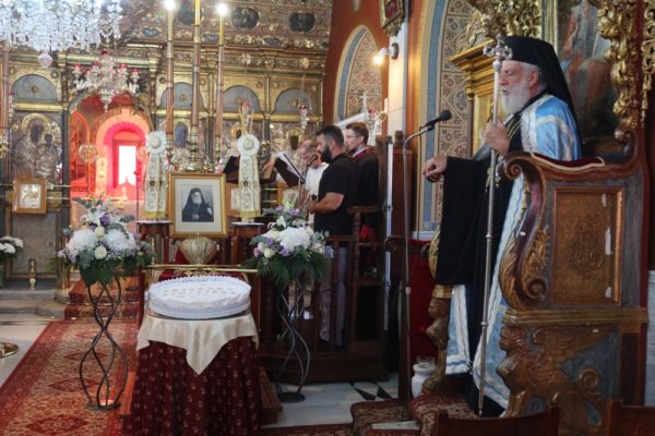 Υπογράμμισε, τέλος, ότι στα έσχατα της ζωής του ευτύχησε να έχει τη στοργή και την υιϊκή περίθαλψη πνευματικών του τέκνων, όπως ο Αρχιμ. Δωρόθεος Γάγγος, αλλά και τη μέριμνα της κας Ελένης Μαυρομάτη, την οποία ετίμησε με το μετάλλιο της Ιεράς Μητροπόλεως και για την τεσσαρακονταετή υπηρεσία της στον Οίκο Ευγηρίας της Ιεράς Μητροπόλεως και για την εικοσαετή διακονία της προς τον ίδιο στο Επισκοπείο Ερμουπόλεως.