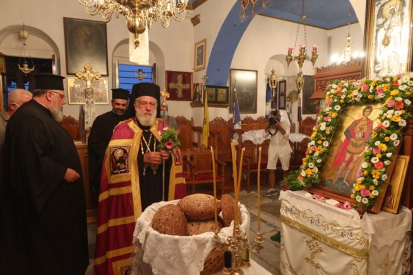 Στον Εόρτιο Εσπερινό που τελέσθηκε χθες, Πέμπτη 26 Αυγούστου, στο ιερό Παρεκκλήσιο του Αγίου Φανουρίου, που βρίσκεται στο σταυροδρόμι της Χώρας Μυκόνου, στην εμβληματική περιοχή “Τρία Πηγάδια”, χοροστάτησε ο Σεβασμιώτατος κ. Δωρόθεος Β’ με τη συμμετοχή του Εφημερίου και Αρχιερατικού Επιτρόπου Άνω Μεράς, Πρωτοπρ. Βασιλείου Τζανιδάκη και του Πρωτοπρ. Γεωργίου Κουσαθανά και την παρουσία της Βουλευτού Κυκλάδων κ. Αικατ. Μονογυιού, του Δημάρχου Μυκόνου κ. Κωνστ. Κουκά, και πλήθους Μυκονίων και παρεπιδημούντων παραθεριστών οι οποίοι προσήλθαν, τηρούντες τα μέτρα υγειονομικής προστασίας και προσφέροντας κατά το έθος πίττες προς τον Άγιο Φανούριο.