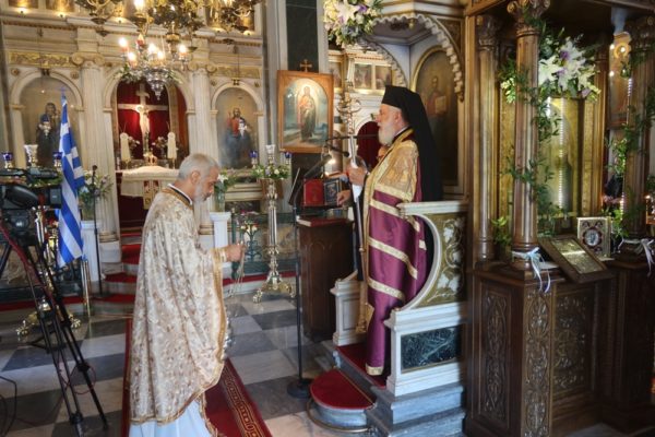 Ευχαρίστησε τέλος τον Εφημέριο, Πρωτοπρ. Χριστοφόρο Παπανικολάου, τους Επιτρόπους και τους συνεργάτες τους για την προετοιμασία της Πανηγύρεως, και ευχήθηκε σε όλους για το φθινόπωρο.