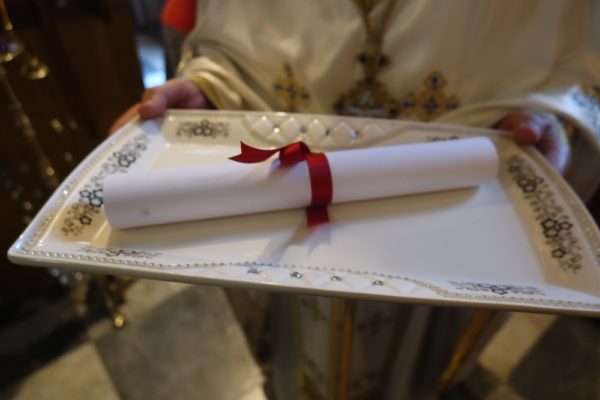 Μετά το πέρας της Θείας Λειτουργίας, η οποία ανεμεταδόθη απ’ ευθείας από τον Περιφερειακό Τηλεοπτικό Σταθμό “SYROS TV1”, η Ευεργέτις του Ναού κ. Ζαφειρία Λαυρεντιάδη απεκάλυψε αναμνηστική πλάκα για την ανακαίνιση του Ιερού Ναού, στην ολοκλήρωση της οποίας η ιδία καθοριστικά συνέβαλε και προς την οποία ο Σεβασμιώτατος κ. Δωρόθεος Β’ επέδωσε την Ευαρέσκεια της Ιεράς Μητροπόλεως.