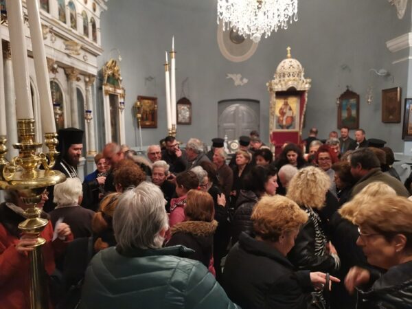 Μετά το πέρας της Ακολουθίας, ο ομιλητής, Αρχιμ. Αλέξιος Παπαδόπουλος, μετέφερε τις ευχές του Σεβασμιωτάτου Μητροπολίτη Σύρου κ. Δωροθέου Β’, διένειμε σε όλους τους παρισταμένους εικόνες των Αγίων Κωνσταντίνου & Ελένης και ευχαρίστησε τον ευσεβέστατο ιδιοκτήτη και Προνοιάρχη του Ναού κ. Αθανάσιο Μαρτίνο για την φιλοξενία του.