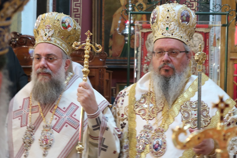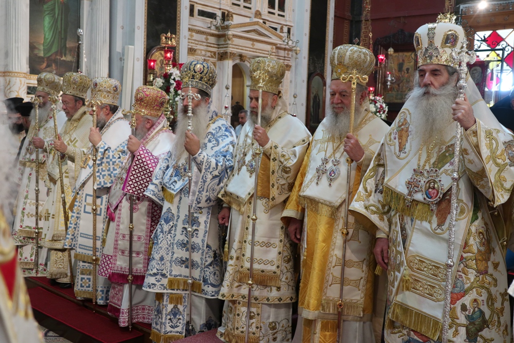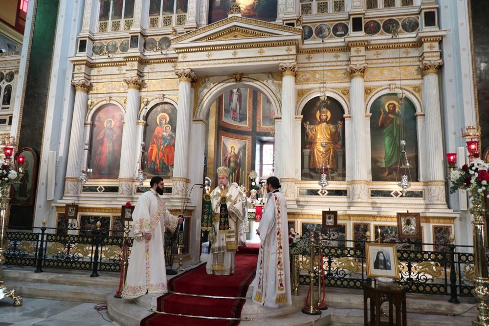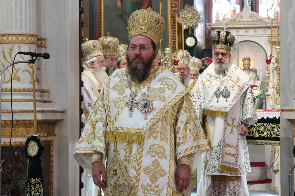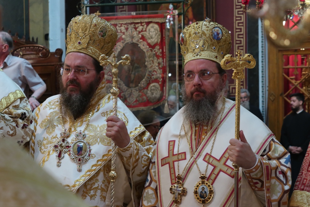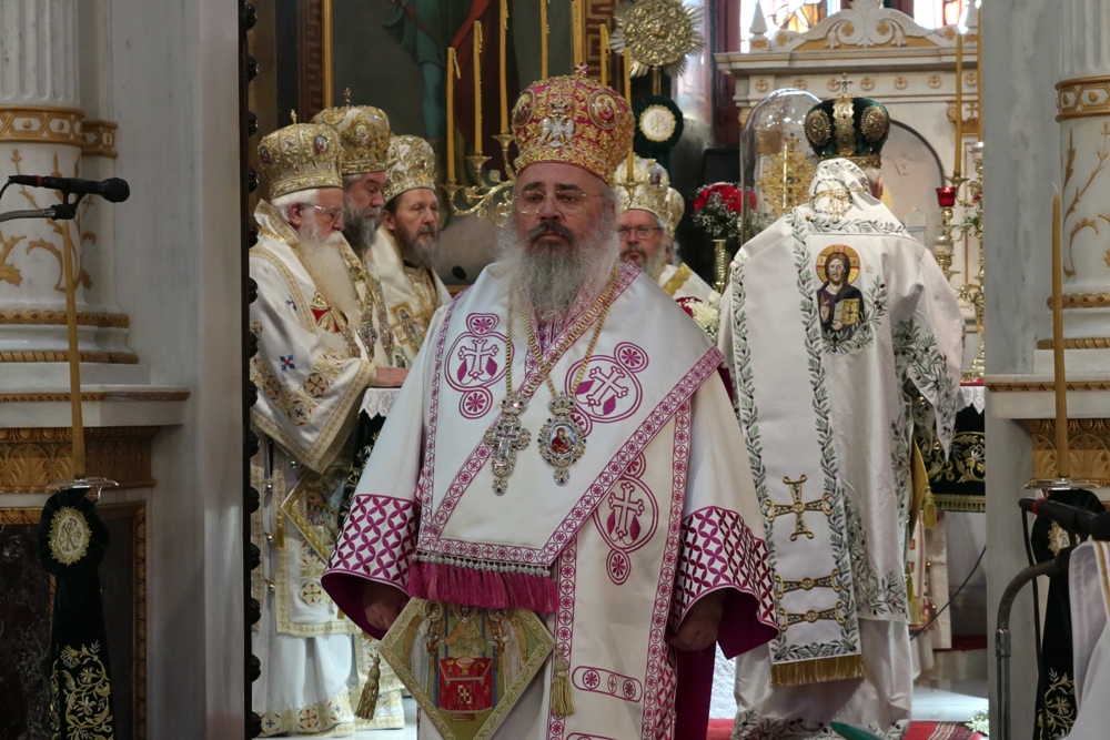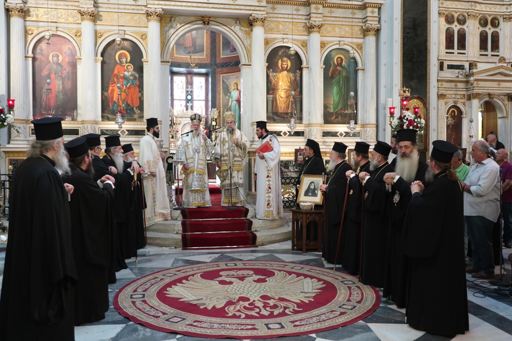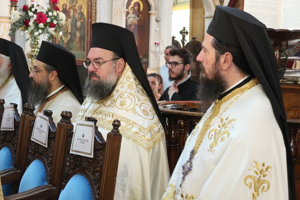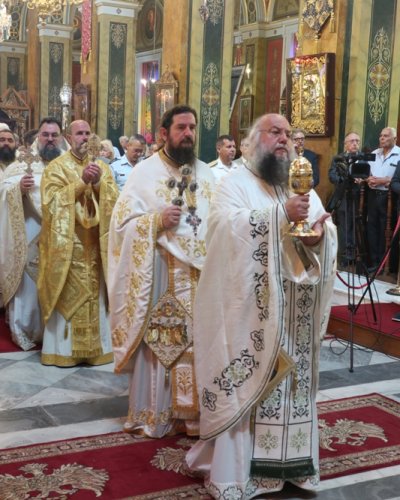 Η Θείας Λειτουργία τελέστηκε με τη συλλειτουργική συμμετοχή των Σεβασμιωτάτων Μητροπολιτών Σάμου κ. Ευσεβίου, Δημητριάδος κ. Ιγνατίου, Πειραιώς κ. Σεραφείμ, Σερρών κ. Θεολόγου, Χαλκίδος κ. Χρυσοστόμου, Θεσσαλιώτιδος κ. Τιμοθέου, Τρίκκης κ. Χρυσοστόμου, Φθιώτιδος κ. Συμεών, Λαρίσης κ. Ιερωνύμου, Λαγκαδά κ. Πλάτωνος, Κιλκισίου κ. Βαρθολομαίου, Γόρτυνος κ. Νικηφόρου, Αιτωλίας και Ακαρνανίας κ. Δαμασκηνού, Γλυφάδας κ. Αντωνίου, και των Θεοφιλεστάτων Επισκόπων Κεράμων κ. Βαρθολομαίου, Σκοπέλου κ. Νικοδήμου και Αχελώου κ. Νήφωνος, και Εφημερίων της Ιεράς Μητροπόλεως και από άλλες Ιερές Μητροπόλεις της Ελλάδος.