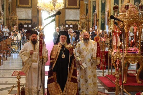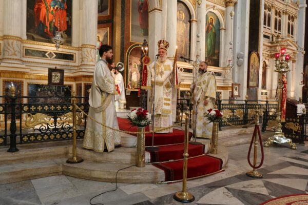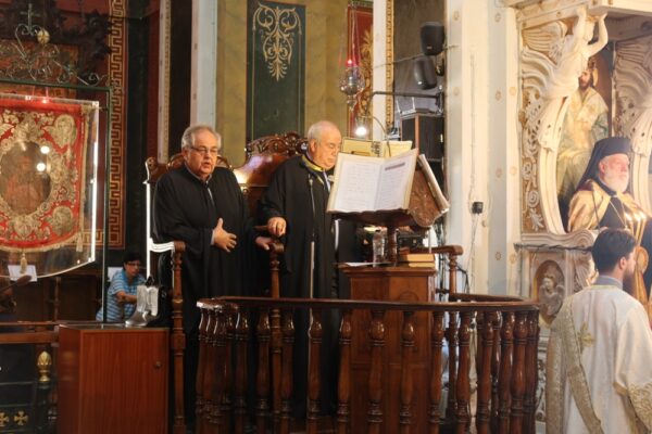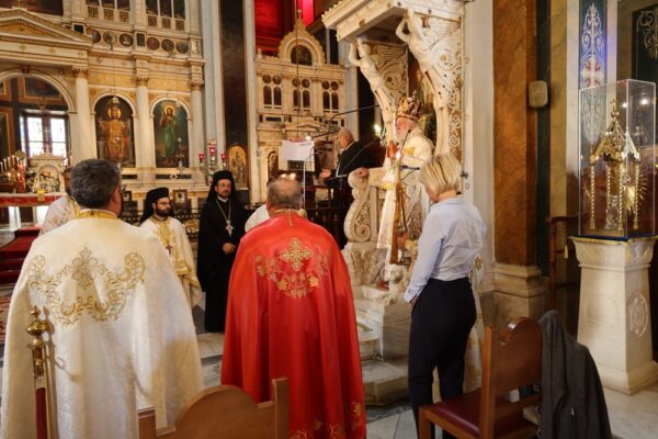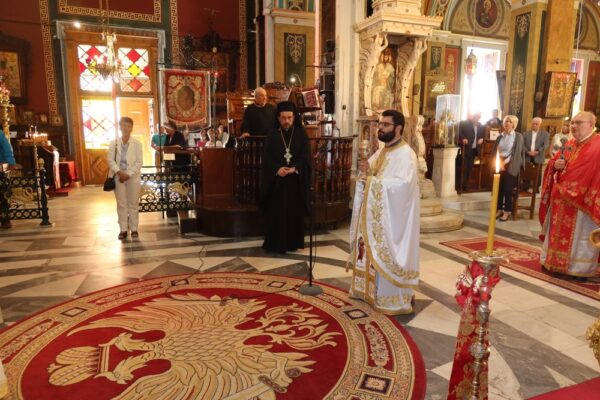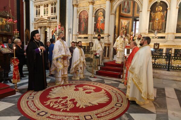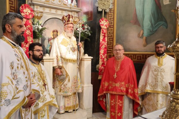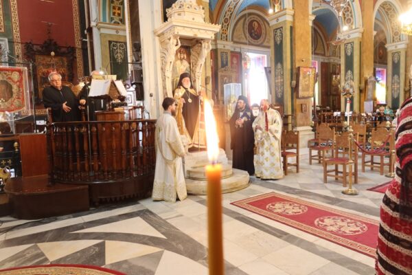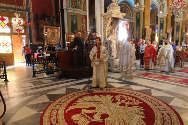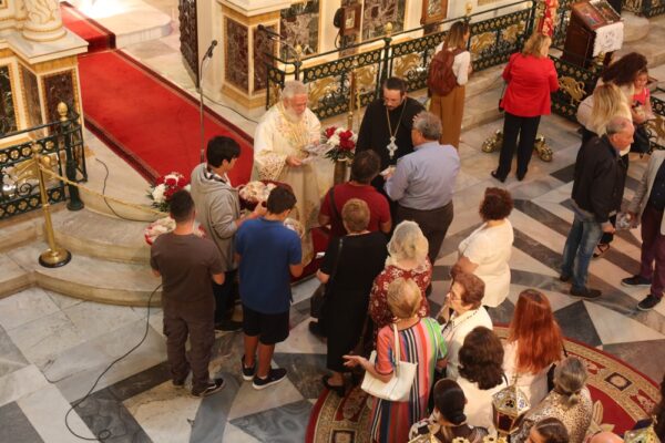 Τέλος, ευχαρίστησε τους Εφημερίους του Ναού, Αρχιμ. Βενέδικτο Φραγκογιάννη και Οικονόμο Λουκά Βασσάλο και τους συνεργάτες τους για τον ευτρεπισμό της Πανηγύρεως, και τους Ιεροψάλτες και τα μέλη της πολυφωνικής χορωδίας του Ναού, για την καλλικέλαδη απόδοση των ύμνων.