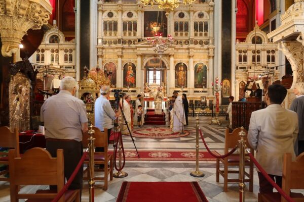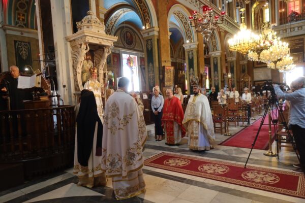 Στον Ιερό Καθεδρικό Ναό του Αγίου Νικολάου Ερμουπόλεως Σύρου, τελέσθηκε την Κυριακή το πρωί Αρχιερατική Θεία Λειτουργία, ιερουργούντος του Σεβασμιωτάτου Μητροπολίτη Σύρου κ. Δωροθέου Β’, συλλειτουργούντων Εφημερίων της Σύρου, επί τη συμπληρώσει 84 ετών από της Ευρέσεως της Εικόνος του Αγίου Δημητρίου, η οποία αφ’ εσπέρας, λόγω των ειδικών συνθηκών υγειονομικής προστασίας, είχε μεταφερθεί με αυτοκινητοπομπή από τον Ιερό Ναό του Αγίου, κειμένου επί του τόπου της Ευρέσεως, στην περιοχή «Άρμενα» της Ερμούπολης.