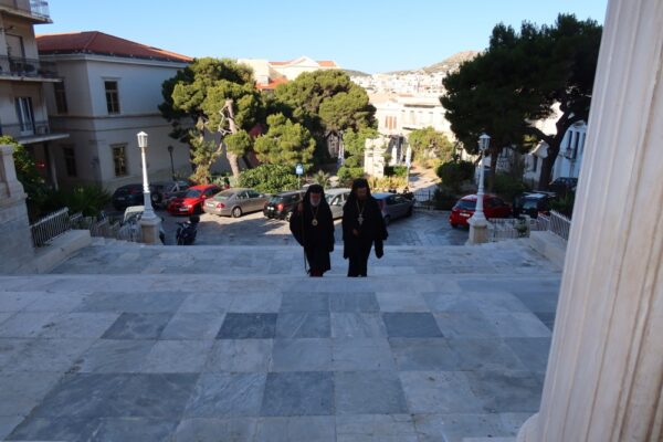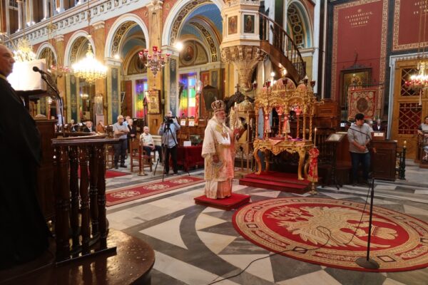 Μάρτυρες του θαύματος, που συνέβη πριν 84 χρόνια στην Ερμούπολη, με την Εύρεση της Εικόνας του Αγίου Δημητρίου χαρακτήρισε τους παρόντες Ερμουπολίτες ο Σεβασμιώτατος κ. Δωρόθεος Β’ , τους οποίους εμακάρισε διότι «μη ιδόντες επίσπευσαν» και τους κάλεσε να γίνουν σκυταλοδρόμοι της παραδόσεως και των διαχρονικών ιδανικών και αξιών της πίστεως, της δικαιοσύνης, της αγάπης προς το συνάνθρωπο και του σεβασμού προς το περιβάλλον, υπενθυμίζοντας τη διαπίστωση του μεγάλου ιστορικού Θουκυδίδη, κατά την οποία «όσο δεν αλλάζει η φύση του ανθρώπου, όσο ο άνθρωπος παραμένει άπληστος και αλαζόνας, θα συμβαίνουν πόλεμοι, βαρβαρότητες και καταστροφές», και κάλεσε όλους τους να ζήσουν μέσα στο Φως της Αναστάσεως του Χριστού και, απερίσπαστοι από τους κάθε είδους αρνητές και αμφισβητίες Του, να φωτίσουν και να αλλάξουν, επί τέλους, τον κόσμο!