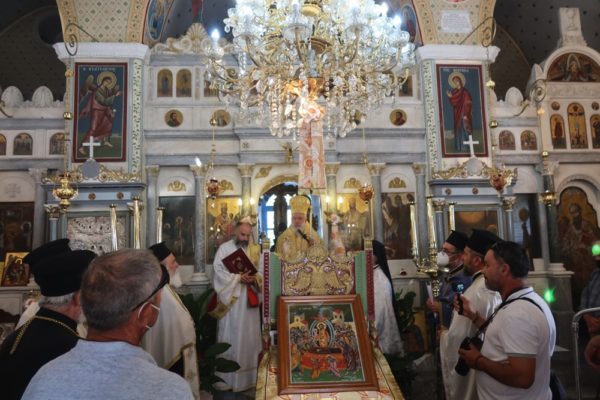 Η τελετή ολοκληρώθηκε με τους πιστούς να ψάλλουν ομοθυμαδόν και εν ενί στόματι τα μεγαλυνάρια της Θεοτόκου και με τη διανομή προς τους παρισταμένους αναμνηστικών εικόνων της Κοιμήσεως της Θεοτόκου και του Ναού.