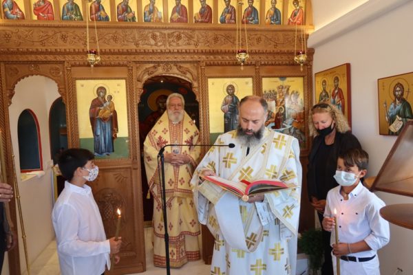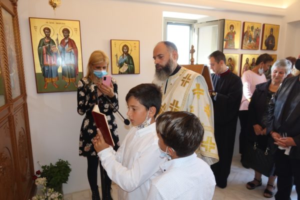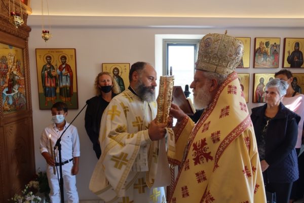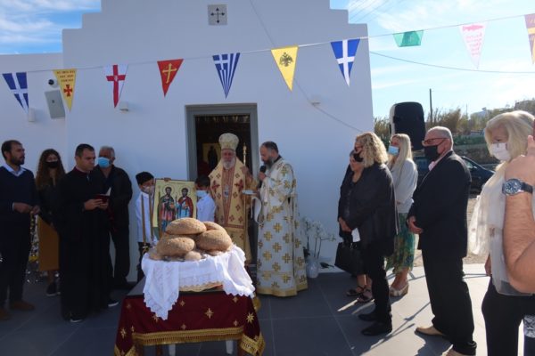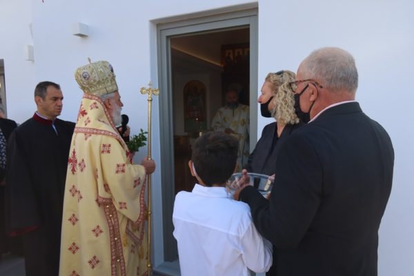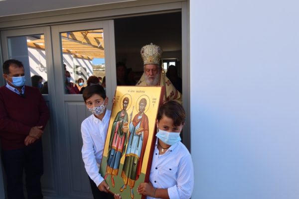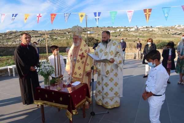 Με την παρουσία πλήθους πιστών, τηρούντων τα διατεταγμένα μέτρα υγειονομικής προστασίας, ο Σεβασμιώτατος κ. Δωρόθεος Β΄ τέλεσε απόψε, στην περιοχή Μαράθι Μυκόνου, τα Θυρανοίξια ιερού Παρεκκλησίου αφιερωμένου στη Γέννηση του Κυρίου και τους Αγίους Αναργύρους Κοσμά και Δαμιανό, το οποίο ανήγειρε φιλογενής οικογένεια της Μυκόνου.