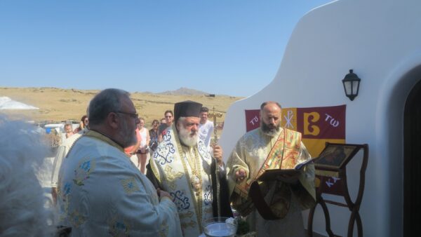 Ο Σεβασμιώτατος κ. Δωρόθεος Β΄ τέλεσε σήμερα τα Θυρανοίξια ιερού Παρεκκλησίου, τιμωμένου επ’ ονόματι των Αγίων Κωνσταντίνου και Ελένης, στην περιοχή “Ταξιάρχης” Μυκόνου.