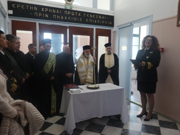 Στην ευχετήρια προσλαλιά του, ο Σεβασμιώτατος Μητροπολίτης Σύρου κ. Δωρόθεος Β΄ ευχήθηκε υγεία και καλή δύναμη στους Εκπαιδευτικούς και τους Σπουδαστές, προς τους οποίους ιδιαίτερα ευχήθηκε να έχουν καλή πρόοδο και γρήγορα να αναλάβουν το πηδάλιο των Ελληνικών πλοίων, τα οποία θα μεταφέρουν το όνομα και την παράδοση της Ελλάδος στα πέρατα της οικουμένης.