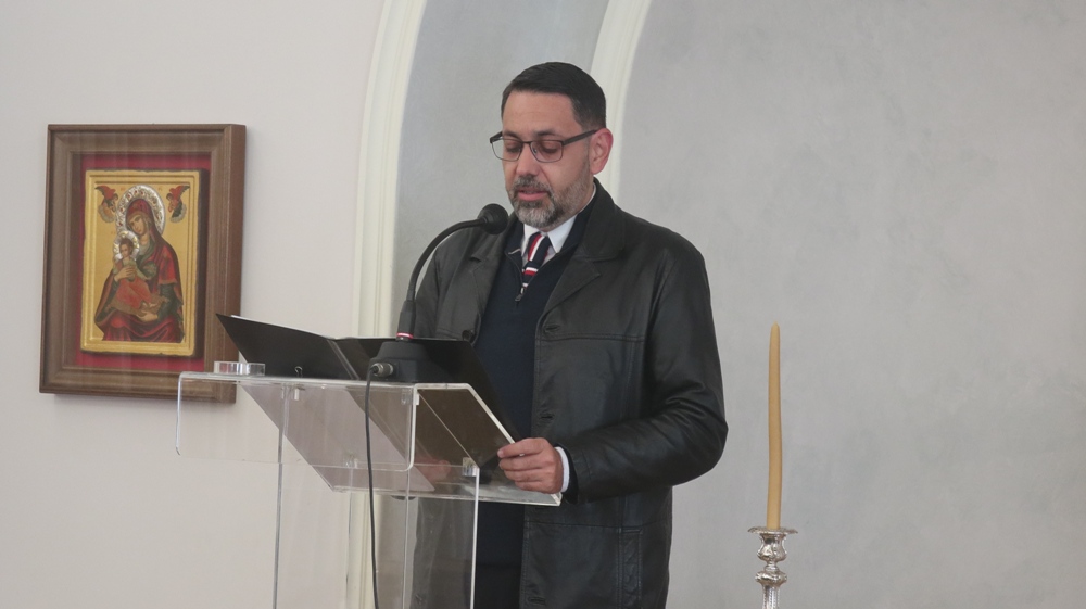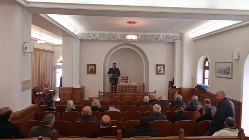 Χαιρετισμό, επίσης, απηύθυνε και ο αρχαιότερος των Ιεροψαλτών, διδάσκαλος και Πρωτοψάλτης του Καθεδρικού Ναού του Αγίου Νικολάου Ερμουπόλεως, κ. Λουκάς Τσούκος.