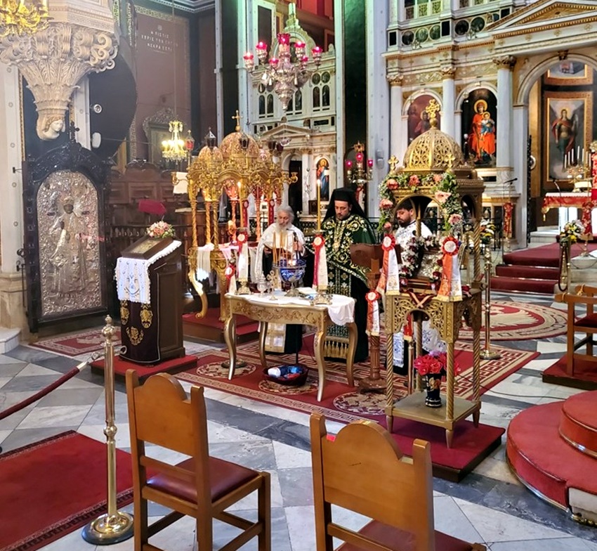 Ο Προϊστάμενος του Ναού, Αρχιμ. Βενέδικτος Φραγκογιάννης, αναφέρθηκε στην τριπλή ευλογία που δέχθηκε εφέτος η Σύρος, την ανάμνηση της προ δεκαπενταετίας μετακομιδής του αποτμήματος εκ των ιερών λειψάνων του Αγίου Νικολάου από την Ιταλία στην Ερμούπολη, διά χειρών του αοιδίμου Αρχιεπισκόπου Αθηνών και Πάσης Ελλάδος Χριστοδούλου (13.05.2006), τον εορτασμό της 85ης Επετείου από την Εύρεση της Εικόνας του Αγίου Δημητρίου και την έλευση από την ιερά νήσο Τήνο της θαυματουργού Εικόνας της Παναγίας «Κυρά-Ξένης», προς ευλογία και επιστηριγμό των πιστών.