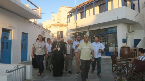 Ευχαρίστησε επίσης και συνεχάρη τα παιδιά του τοπικού Πολιτιστικού Συλλόγου, για την προετοιμασία καλλιτεχνικής Εκδήλωσης μετά τον Εσπερινό και τα προέτρεψε να συνεχίσουν τις πατρώες παραδόσεις και τα ωραία έθιμα του νησιού τους.