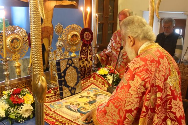 Ακολούθως, τελέσθηκε Τρισάγιο προ της ευρισκομένης στα προπύλαια του Ναού προτομής του αοιδίμου Μητροπολίτου Χριστουπόλεως Πέτρου (Δακτυλίδη) του Μυκονίου