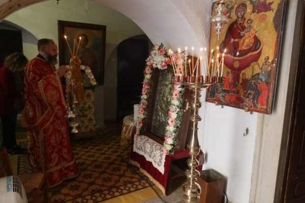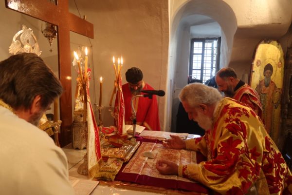 Το αναλόγιο της Μονής κόσμησαν οι κ.κ. Βασίλειος Παπαγεωργίου, Κωνσταντίνος Χατζής και Απόστολος Μαρκόπουλος.